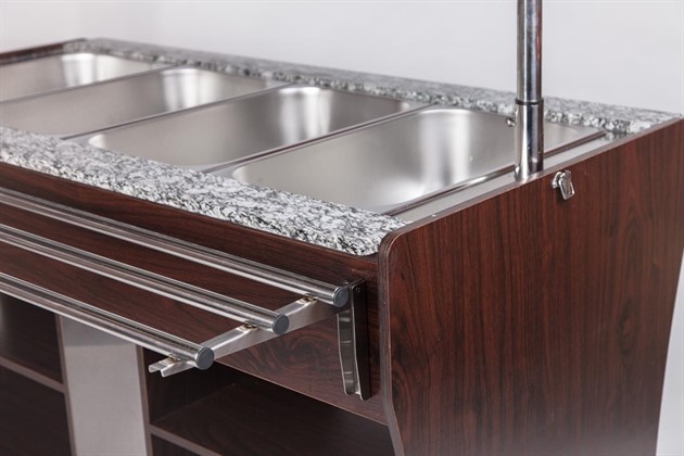 Fyra hjul varav två med broms gör kylbuffén lätt att flytta.