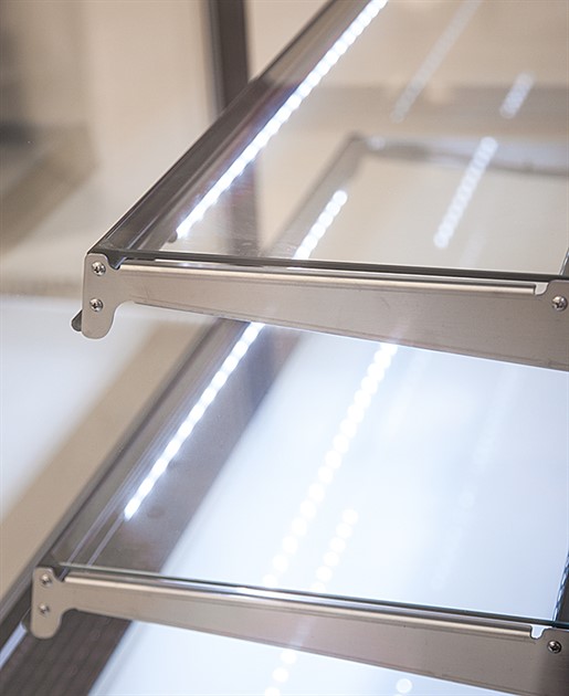 Kylmontern har två justerbara hyllplan med LED belysning på varje hyllplan.