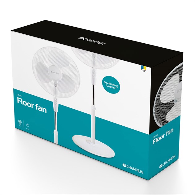 Champions golvfläkt skapar en kylande vind under varma dagar. Placera i sovrummet, köket eller varför inte i husvagnen, fläkten står stabilt och den oscillerande funktionen får luften att sprida sig i hela rummet. Välj mellan 3 hastigheter för att anpassa till just dina behov.