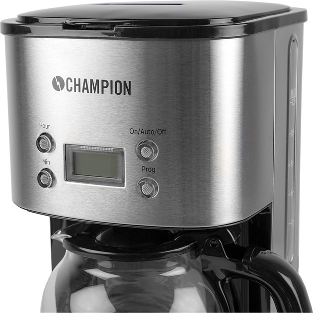 Champion CHKB210 är en stilren och prisvärd kaffebryggare som är utrustad med timerfunktion. Timerfunktionen på 24h är perfekt för dig som vill vakna upp till nybryggt kaffe varje morgon. Fyll på maskinen på kvällen och ställ in timern på tiden du önskar att kaffet ska börja bryggas. Med en exklusiv design i rostfritt stål har du här en kaffebryggare som passar in i alla kök.