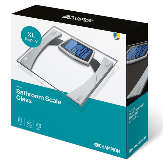 Champions Personvåg med extra stor display är till för dig som vill ha en funktionell och samtidigt snygg personvåg, låt den stå framme i badrummet. Det härdade glaset är tåligt och med en maxkapacitet på 180kg passar den de flesta. Den stora upplysta displayen gör det enkelt att se resultatet av vägningen.