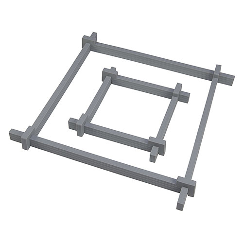 Gjut- och bakbalkarna, säljs i set om fyra stycken balkar. De långa bakbalkarnas maxmått är 30×30 cm och de korta 15×15 cm. Bakbalkarnas båda längder går att kombinera.