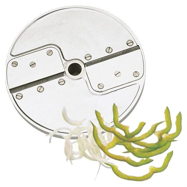 Ett tillbehör till food processor för restauranger som snabbt och smidigt strimlar lök m.m. Lämpar sig utmärkt för strimling av lök (halva lökringar), men fungerar även bra till andra grönsaker som t.ex. morot och rödbeta.