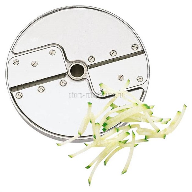 Ett tillbehör till food processor för restauranger som snabbt och smidigt strimlar grönsaker m.m. Lämpar sig utmärkt för strimling av bland annat morot, gurka, zucchini, kålrot, äpple och rädisa.