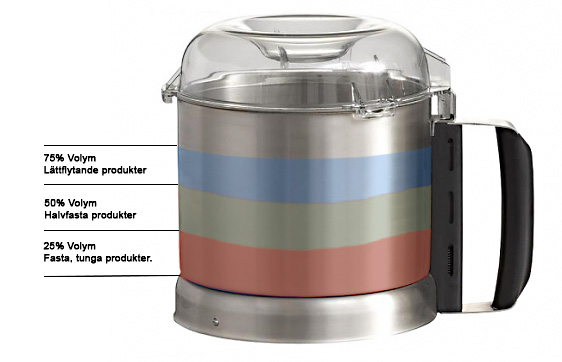 Snabbhackkärlet är 3,7 liter och en slät kniv som grovhackar, finhackar och blandar ingår.