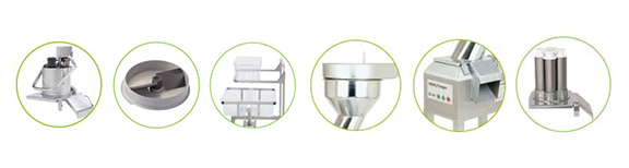 En komplett arbetsstation med grönsaksskärare för storkök och livsmedelstillverkare. Finns många olika tillbehör samt 52 olika skärverktyg att välja mellan. Alltifrån skärskivor, rivskivor, räffelskivor, strimmelskivor till tärnings- och french fries verktyg. Variera frukt, grönsaker och livsmedel i det oändliga med hjälp av de olika skärverktygen. 16-pack skärverktyg ingår.