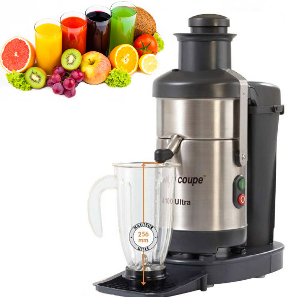 En utmärkt råsaftcentrufug för caféet eller restaurangen som vill tillverka sina egna juicer av färskpressade frukter, bär och grönsaker på nolltid. Alla vitaminerna behålls då det inte sker någon uppvärmning.