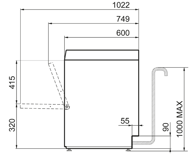 Restaurangdiskmaskin under bänk till restaurang och storkök.