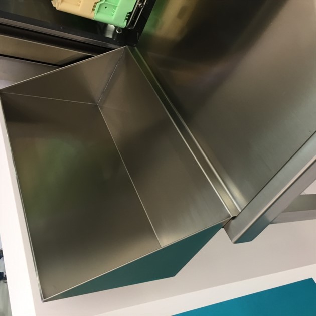 Det fasta stänkskyddet monteras på den rostfria bänken och skruvas sedan i väggen.