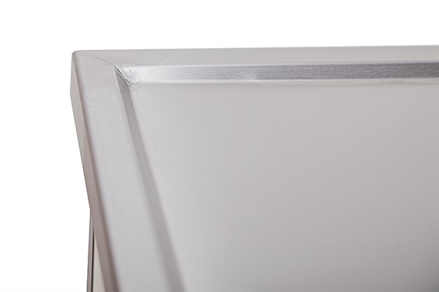 Nedsänkt kant runt hela utmatningsbänken för vattenavrinning.