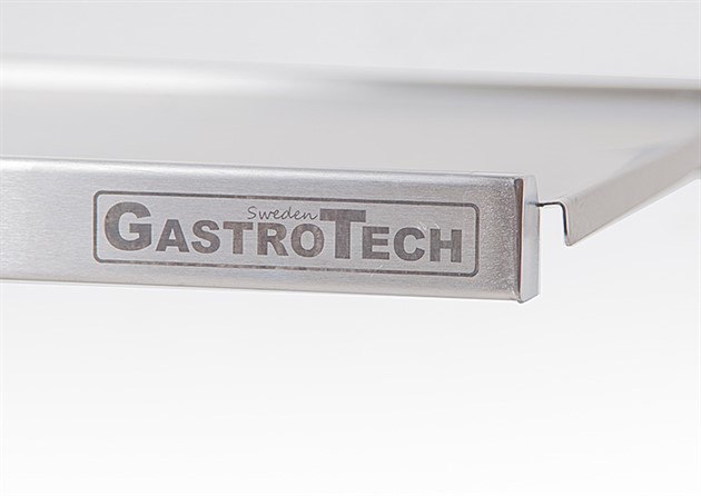 Rostfri utmatningsbänk. Kan placeras både till höger och vänster om diskmaskin.