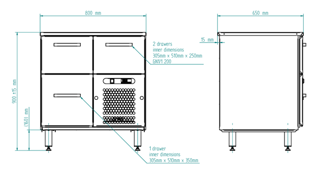 Nedre draglådan har innermåtten (BxDxH): 305x510x350mm