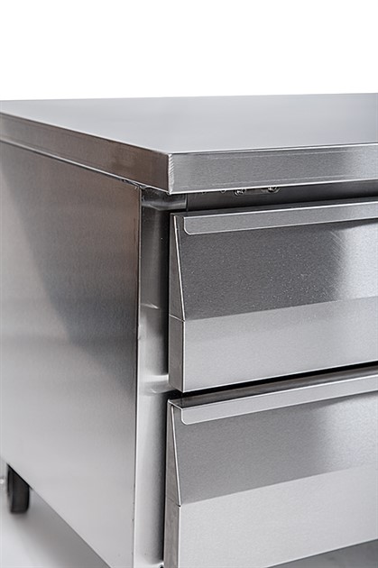 Rundade hörn invändigt för lätt rengöring av grillkylbänken.