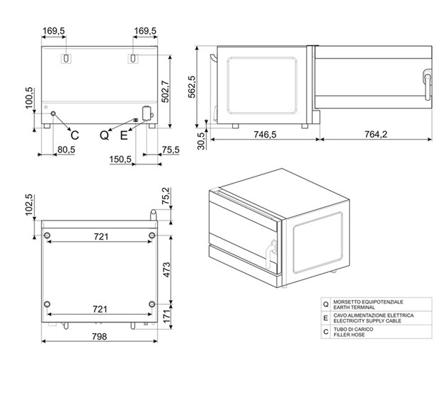 Mindre modell av ugn med en kapacitet för 4 plåtar.