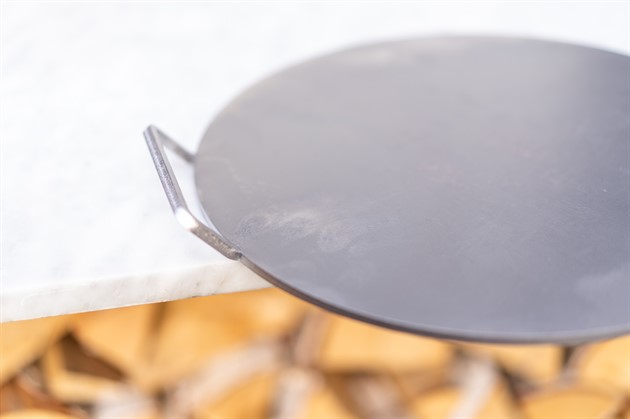 Pizzastålet är tillverkat av 6 mm tjockt varmvalsat svenskt kolstål och producerat i Stockholm. Materialet kommer att skifta färg efter första användningen, efter att du bränt in det. Kolstål får en rödbrun, svartskiftande färg och åldras vackrare och vackrare ju mer du använder stålet.
