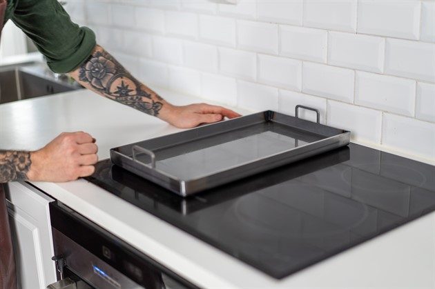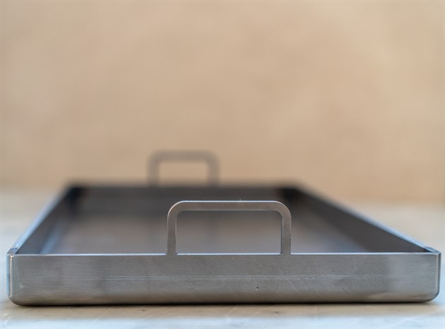 Brickan är gjord av 5 millimeter tjockt varmvalsat svenskt kolstål och är producerad i Stockholm. Materialet kommer att skifta färg efter första användningen, efter att du bränt in den. Kolstål får en rödbrun, svartskiftande färg och åldras vackrare och vackrare ju mer du använder stekbrickan.