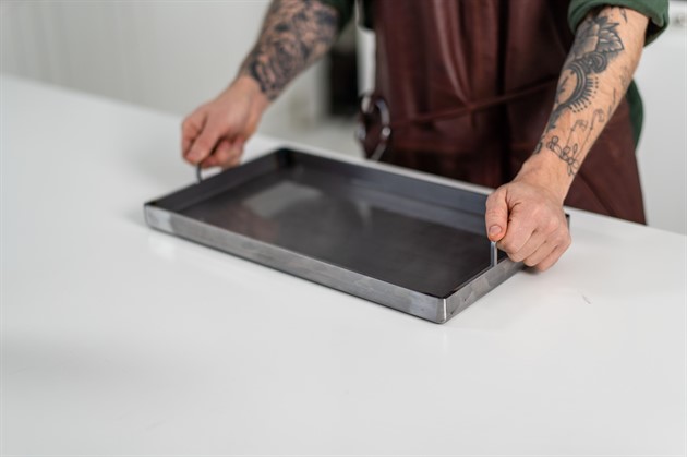 Rustik och robust stekbricka med handtag. Stekbrickan Sten Stures är tillverkad i 5 mm kolstål och är vår största och tjockaste bricka. Detta ger en bricka som leder värme på ett effektivt sätt, går att använda för matlagning på nästan vilken värmekälla som helst och vid nästan hur höga matlagningstemperaturer som helst. Stek hamburgare, stora köttbitar eller andra råvaror som kräver hög värme. Brickan passar även utmärkt för presentation och servering. Sten Stures är också vår största bricka, vilket ger rejäl yta för servering och presentation till lite större sällskap.