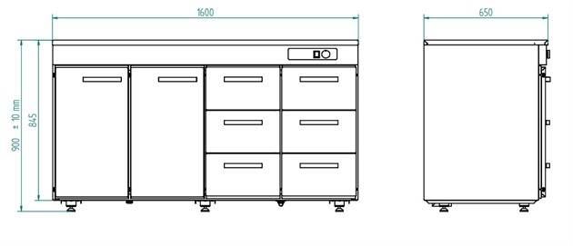 Värmeskåp med 2 dörrar och 6 st draglådor anpassade för GN1/1 -150mm.