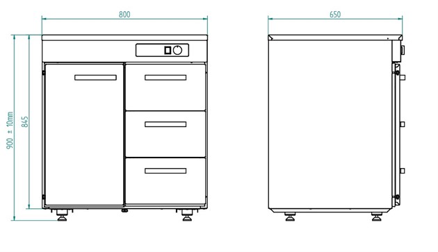 Värmeskåp 80 cm med 1 dörr och 3 draglådor anpassade för GN1/1-150mm.