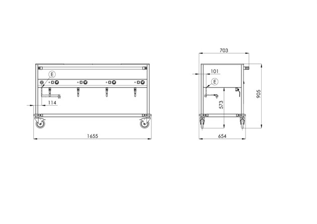 Vattenbad med hjul för 4 st GN1/1-200mm.
