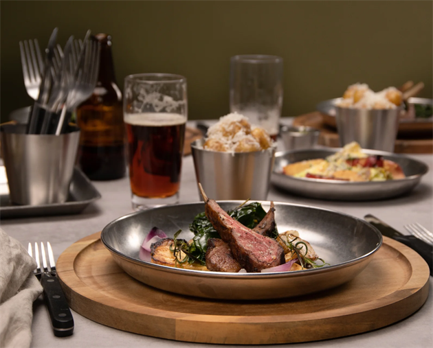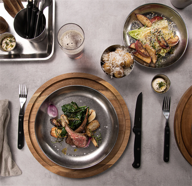Tålig rostfri tallrik med härlig vintage design. Tallriken passar utmärkt att användas på restauranger och cafeér. En otroligt slitstark och hållbar tallrik som tål daglig använding och rengöring inom den professionella branschen.