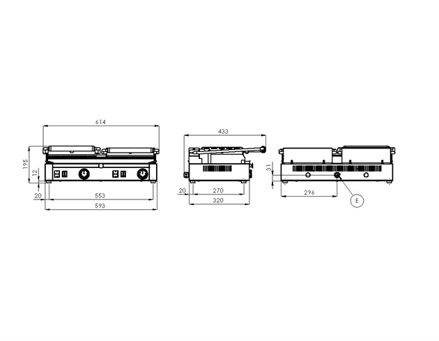 Klämgrill, 62cm bred, med slät+räfflad grillyta till restaurang och café.